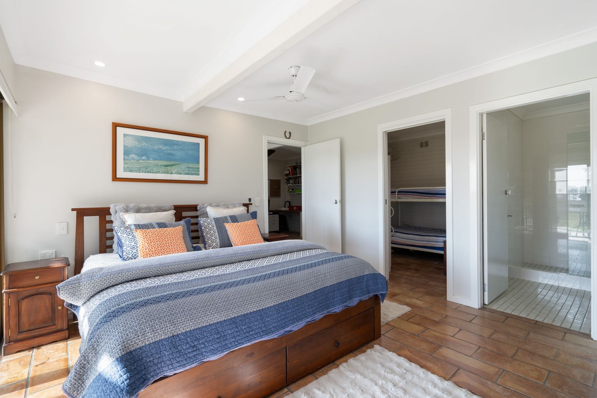 • Three bedrooms + bunk room + dedicated study/home office