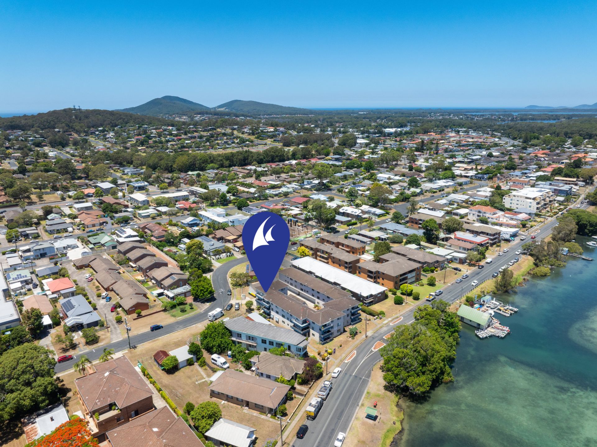 Positioned in the well-regarded Aquarius complex on Little Street, this neat two-bedroom apartment enjoys an enviable location directly opposite the foreshore of Wallis Lake.
