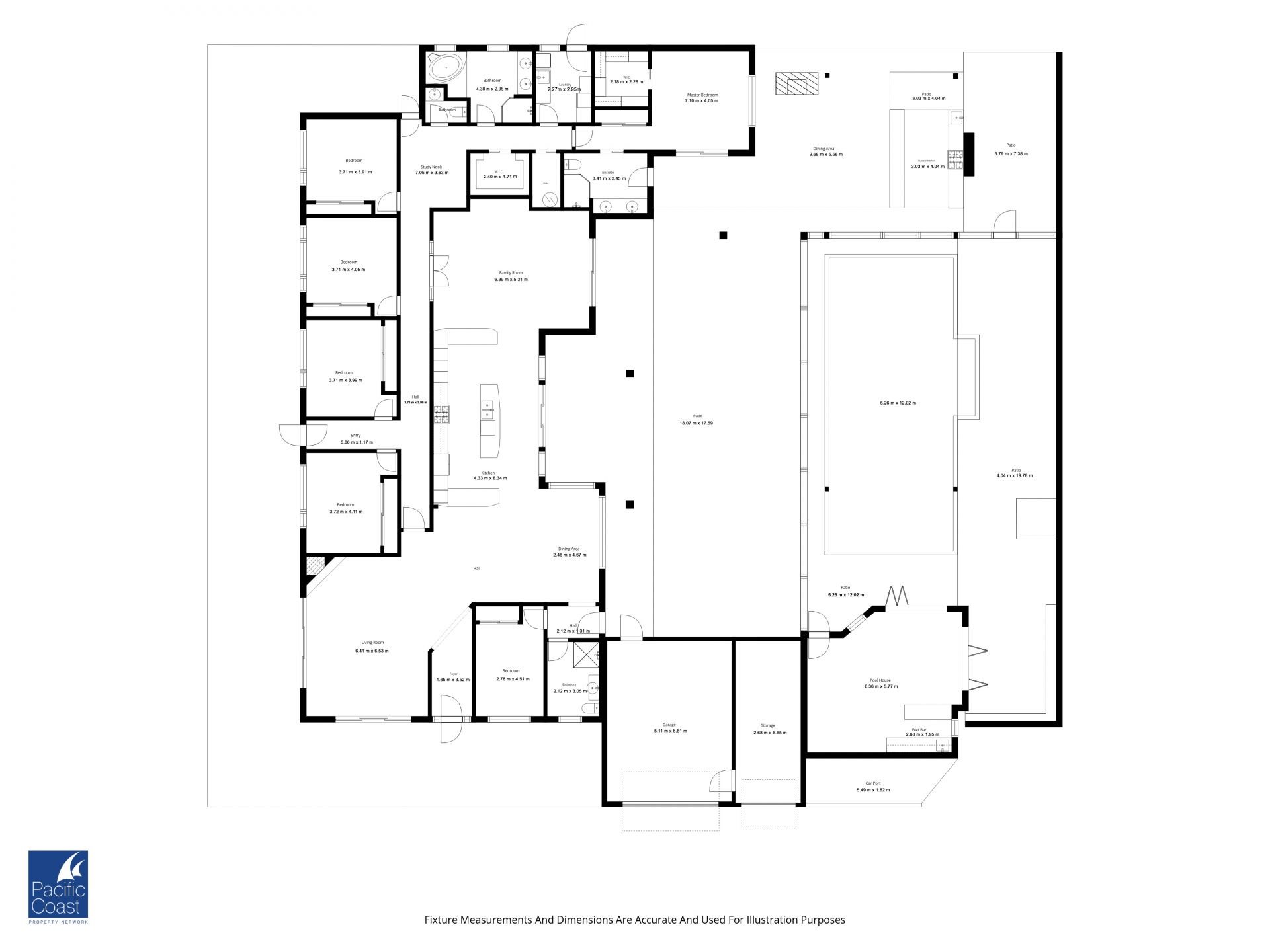 The primary suite is a luxurious retreat featuring a spacious walk-in robe and a designer ensuite with dual vanities. Five additional bedrooms accommodate family or guests in style. Three beautifully appointed bathrooms, including a thoughtfully positioned poolside bathroom, deliver day-to-day practicality with spa-like refinement.