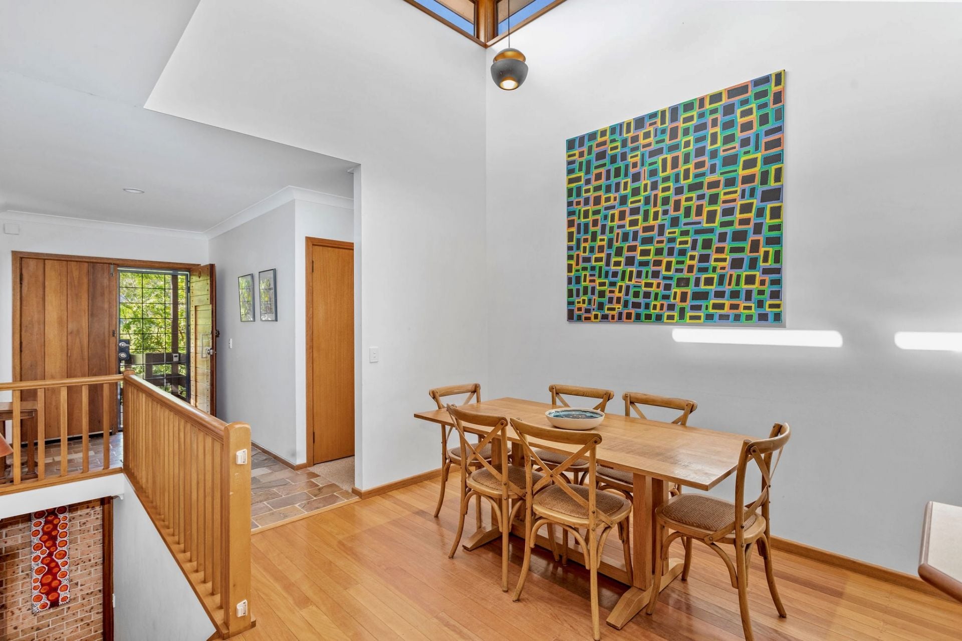 Beyond the charming façade, the home unfolds into generous, welcoming spaces designed with real family living in mind. Upstairs sits at road level with wheelchair access and double timber entry doors leading into warm, light-filled living and dining areas that open to a covered deck overlooking the garden and leafy reserve.