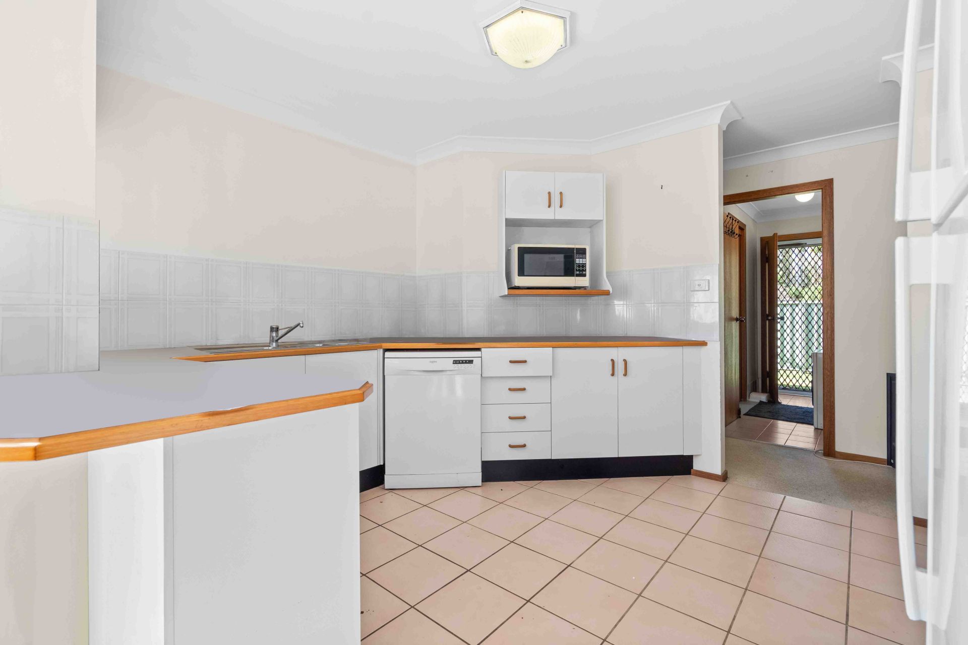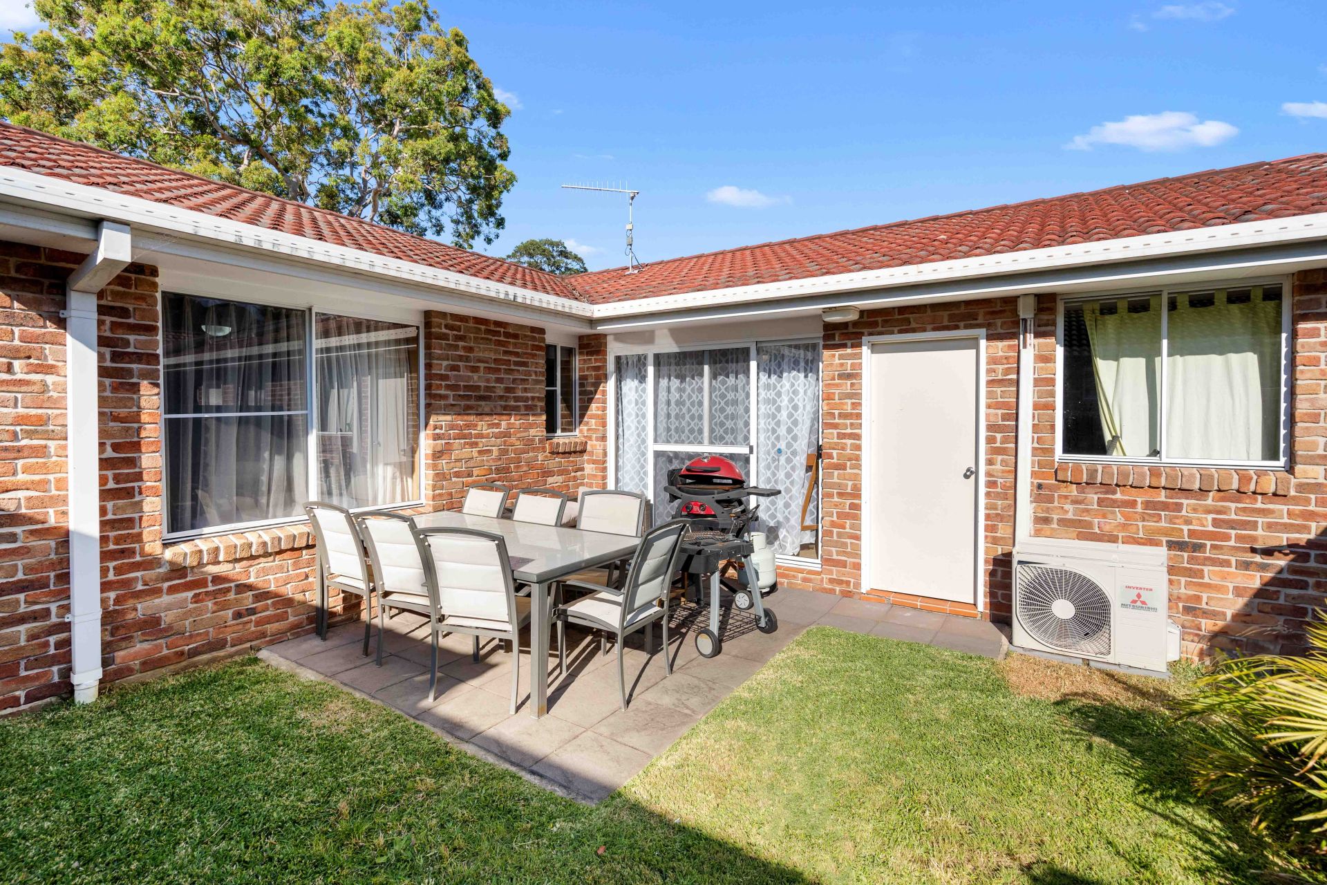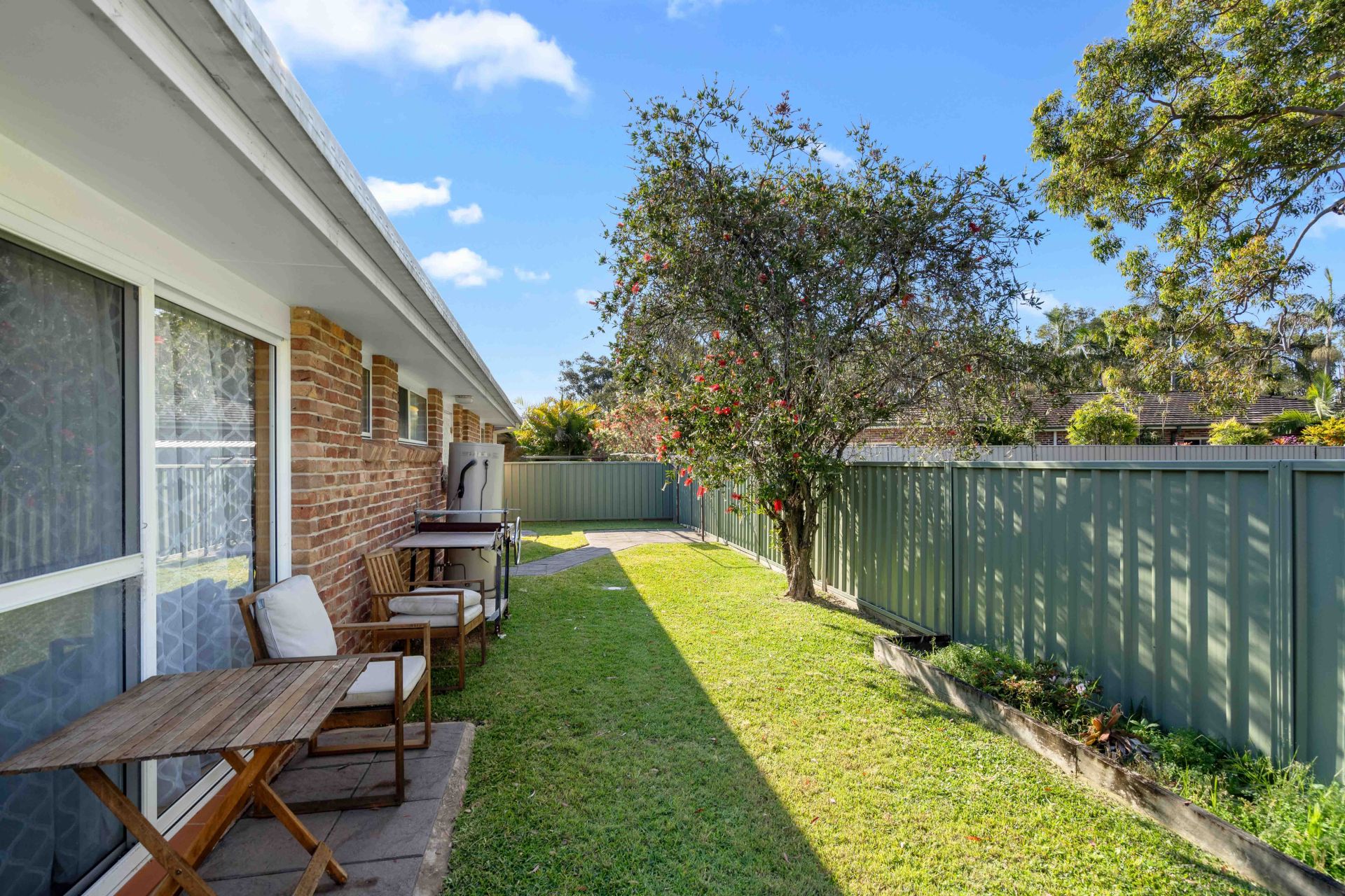 The modern kitchen is perfect for the home cook, featuring reliable appliances, including a dishwasher, and easy-care tiled flooring. With ample bench space and direct access to the outdoor patio via sliding glass doors, it's perfect for those who enjoy entertaining or simply embracing indoor-outdoor living. The courtyard is fully fenced and landscaped, offering a private retreat with a well-kept lawn.