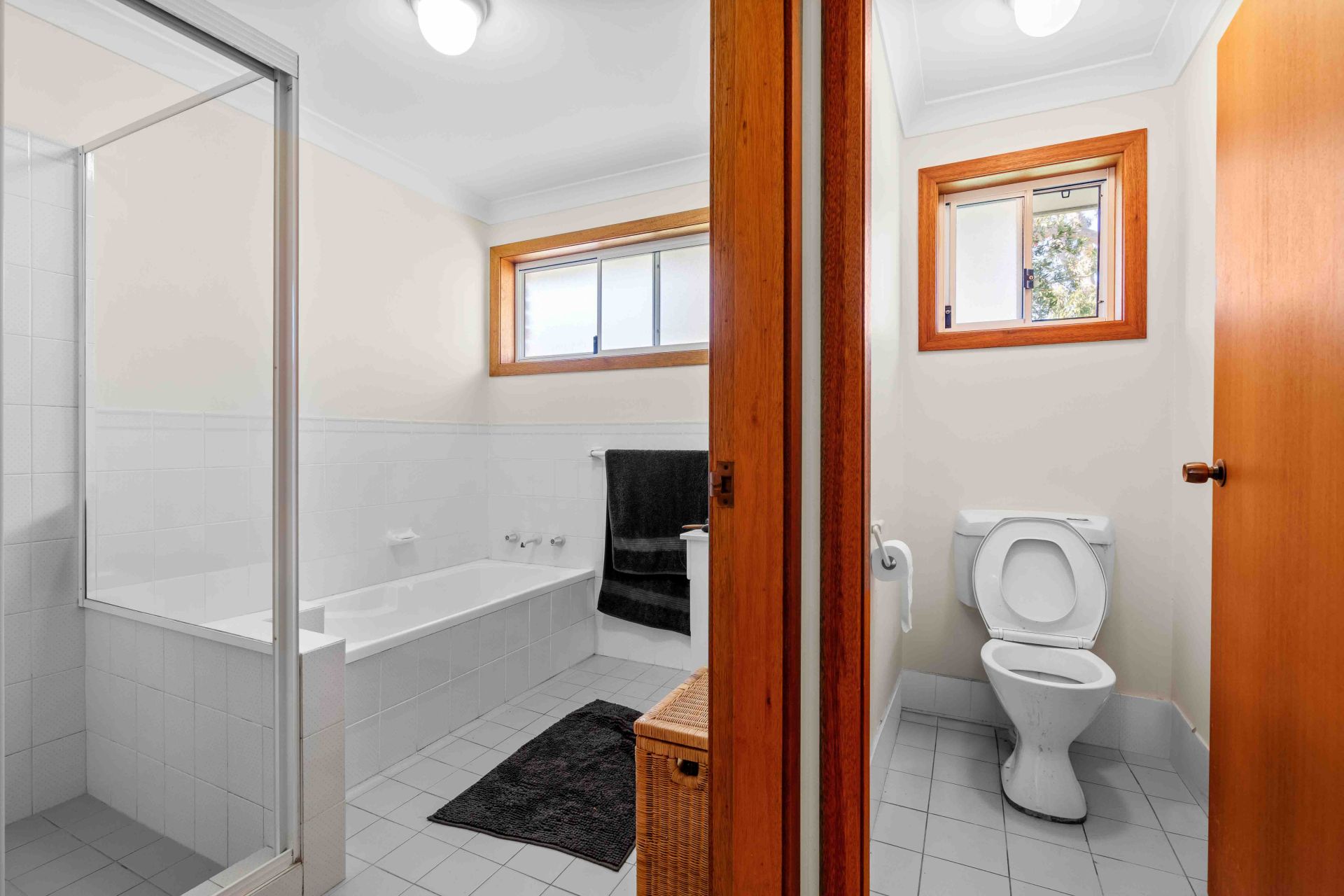 All three generously sized bedrooms are fitted with carpets, ceiling fans, and built-in robes, ensuring plenty of storage. Two well-appointed bathrooms complement the home, with the main offering a separate bath, shower, vanity, and toilet. The second bathroom, located off the internal laundry, includes a shower and toilet for added convenience.