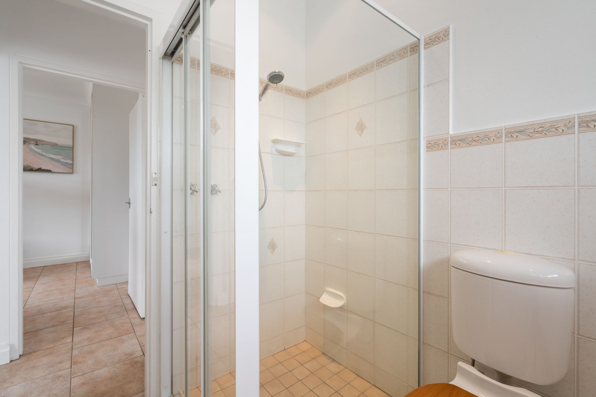Positioned on the top floor of a solid brick complex, the apartment enjoys a bright open-plan layout with tiled living areas, ceiling fans and a natural flow through to the balcony. From here, watch the tide roll in and enjoy the ever-changing coastal outlook between neighbouring buildings.