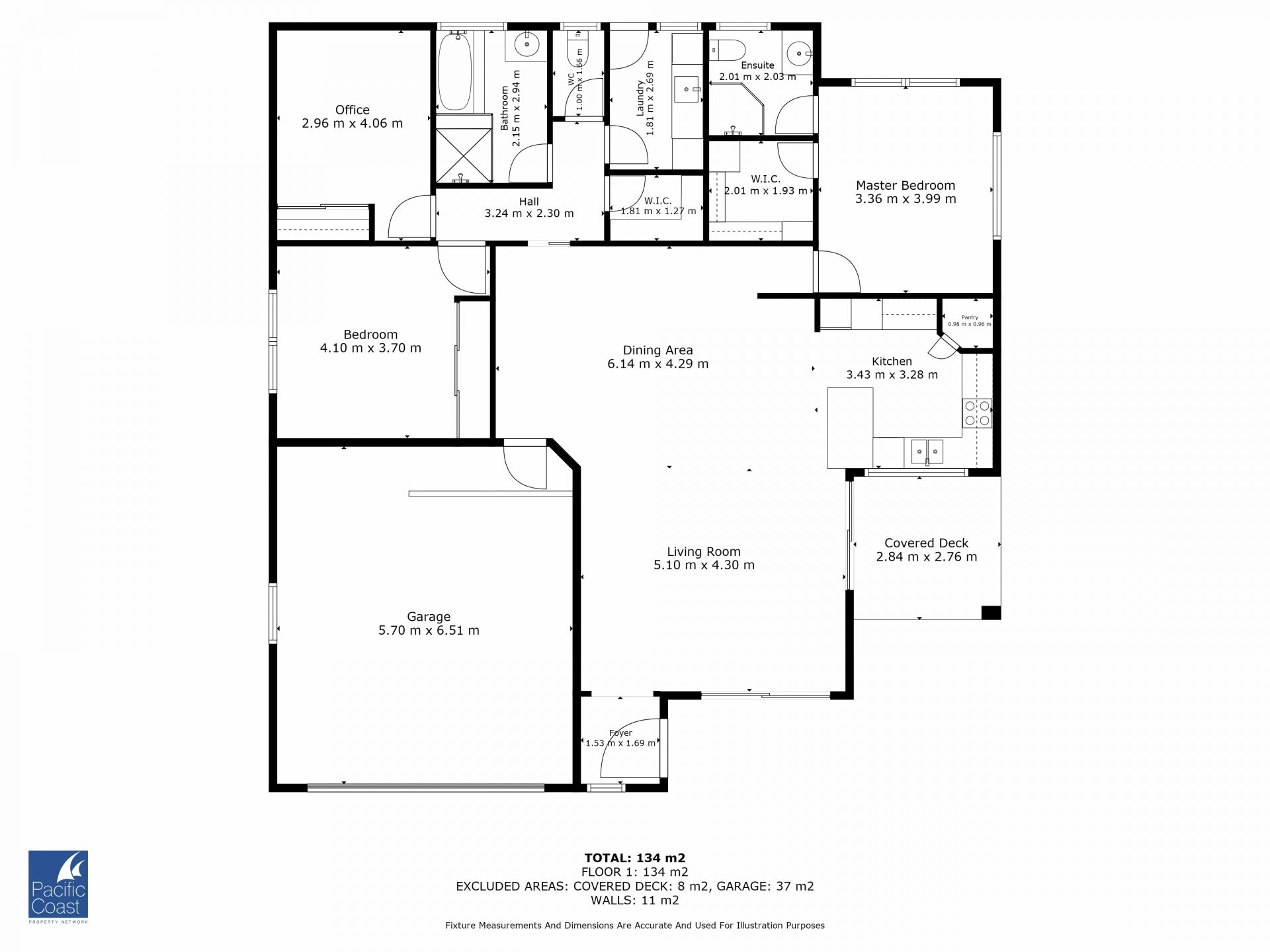 3 spacious bedrooms, 2 bathrooms (master with ensuite)