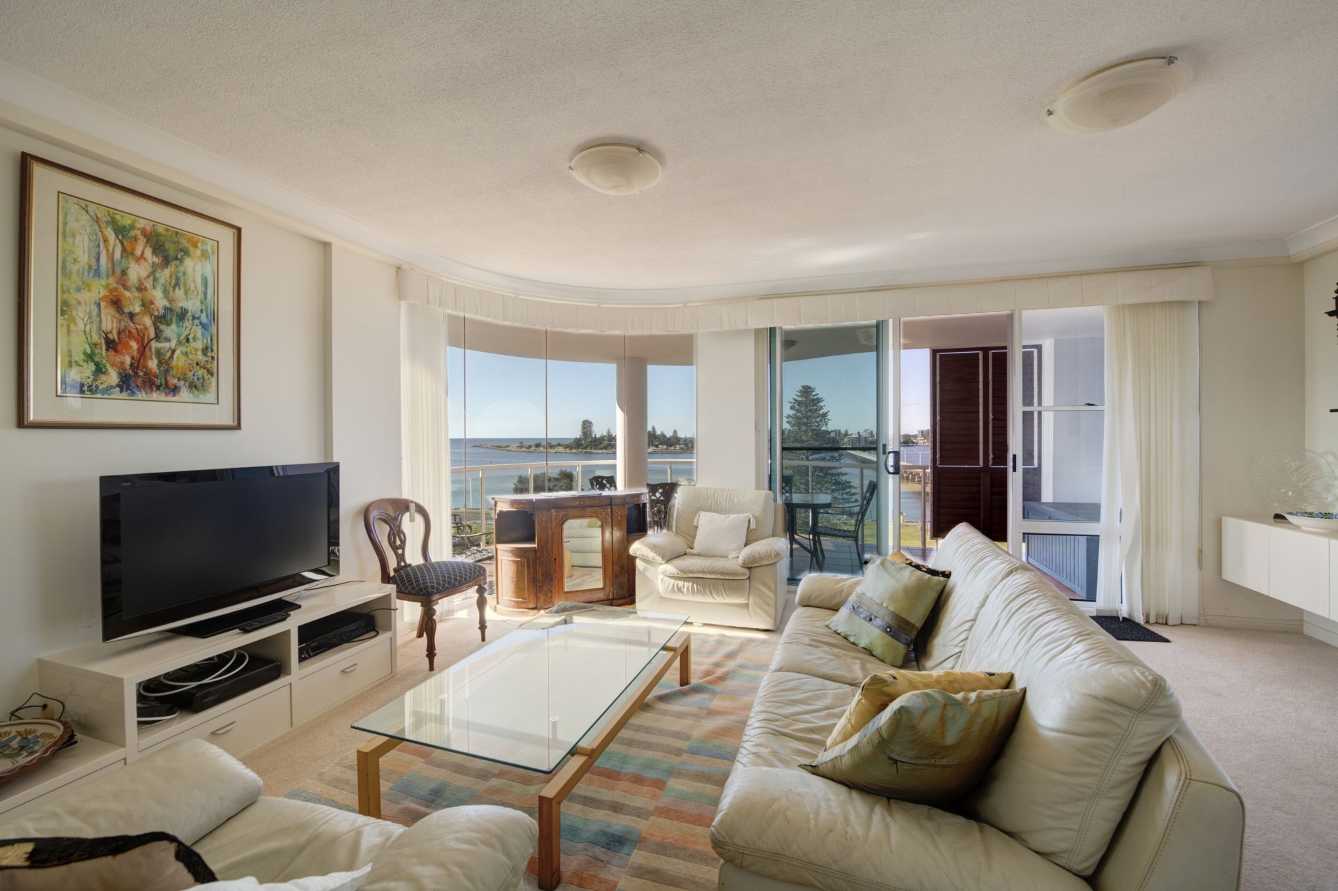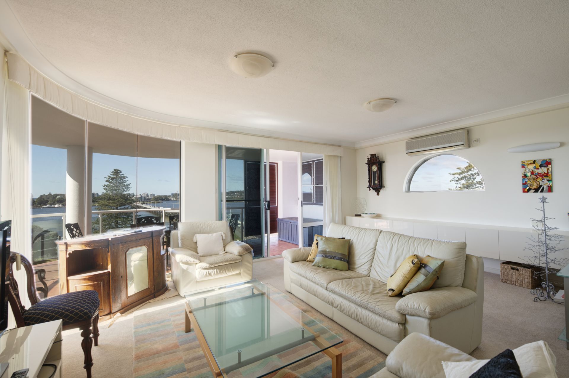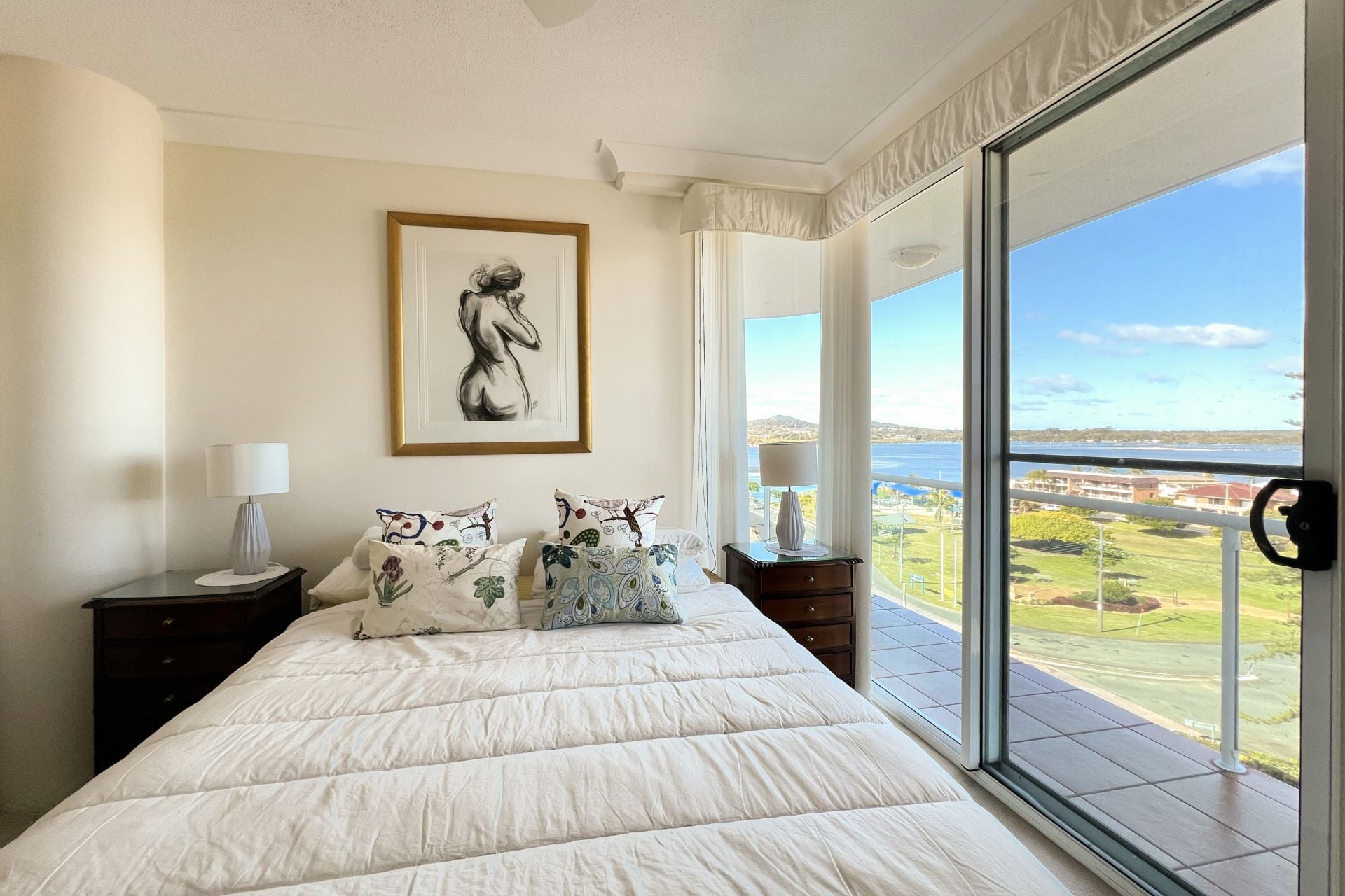 Unrivaled views across the lake to Forster and out through the breakwall. 701 Mirage is without doubt the best 3 bedroom apartment on the market in Tuncurry. Stroll to the supermarket, shops, the lake and Tuncurry Rockpool. Experience the joy of central living in Tuncurry's most sought after apartment complex.