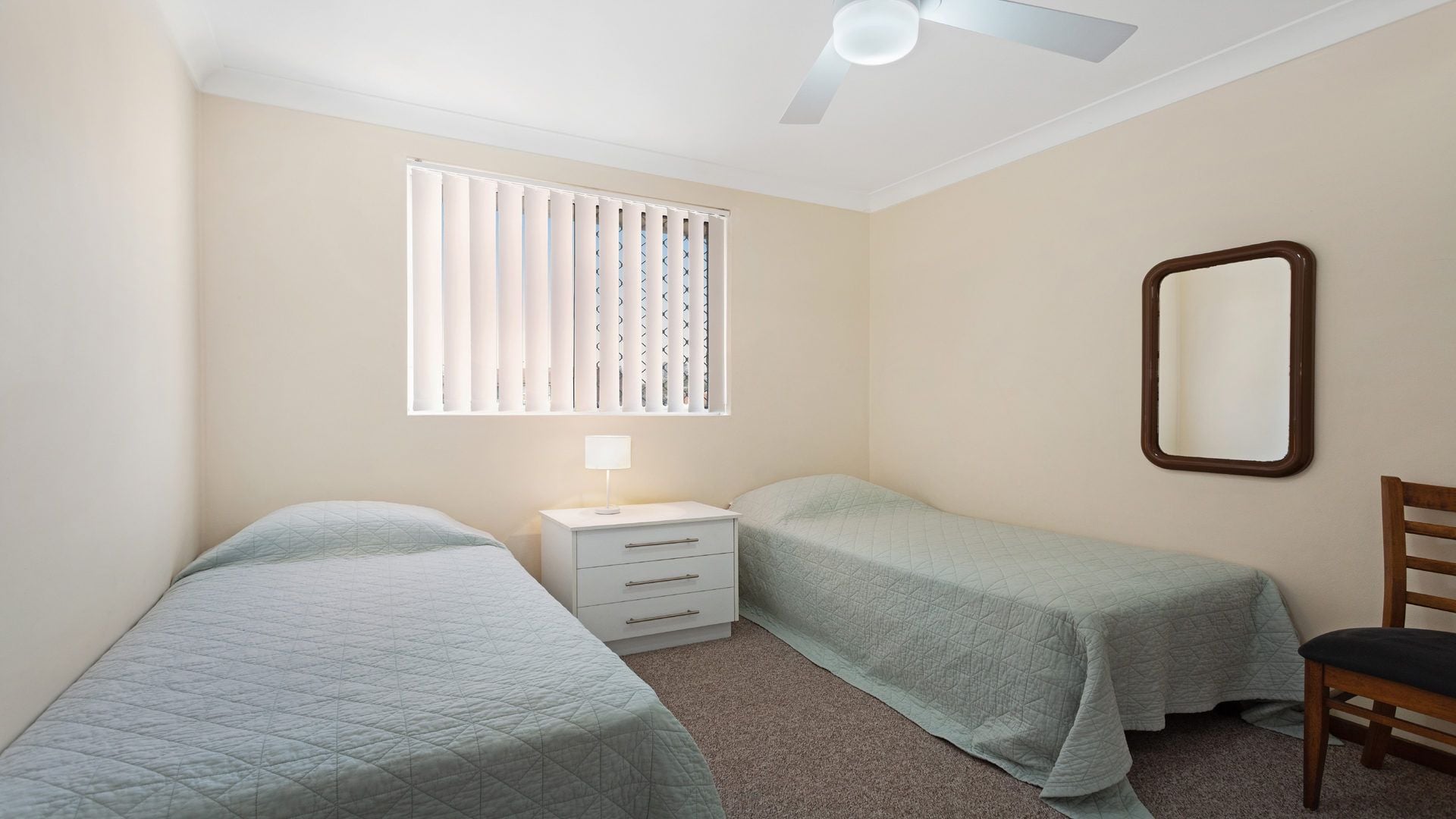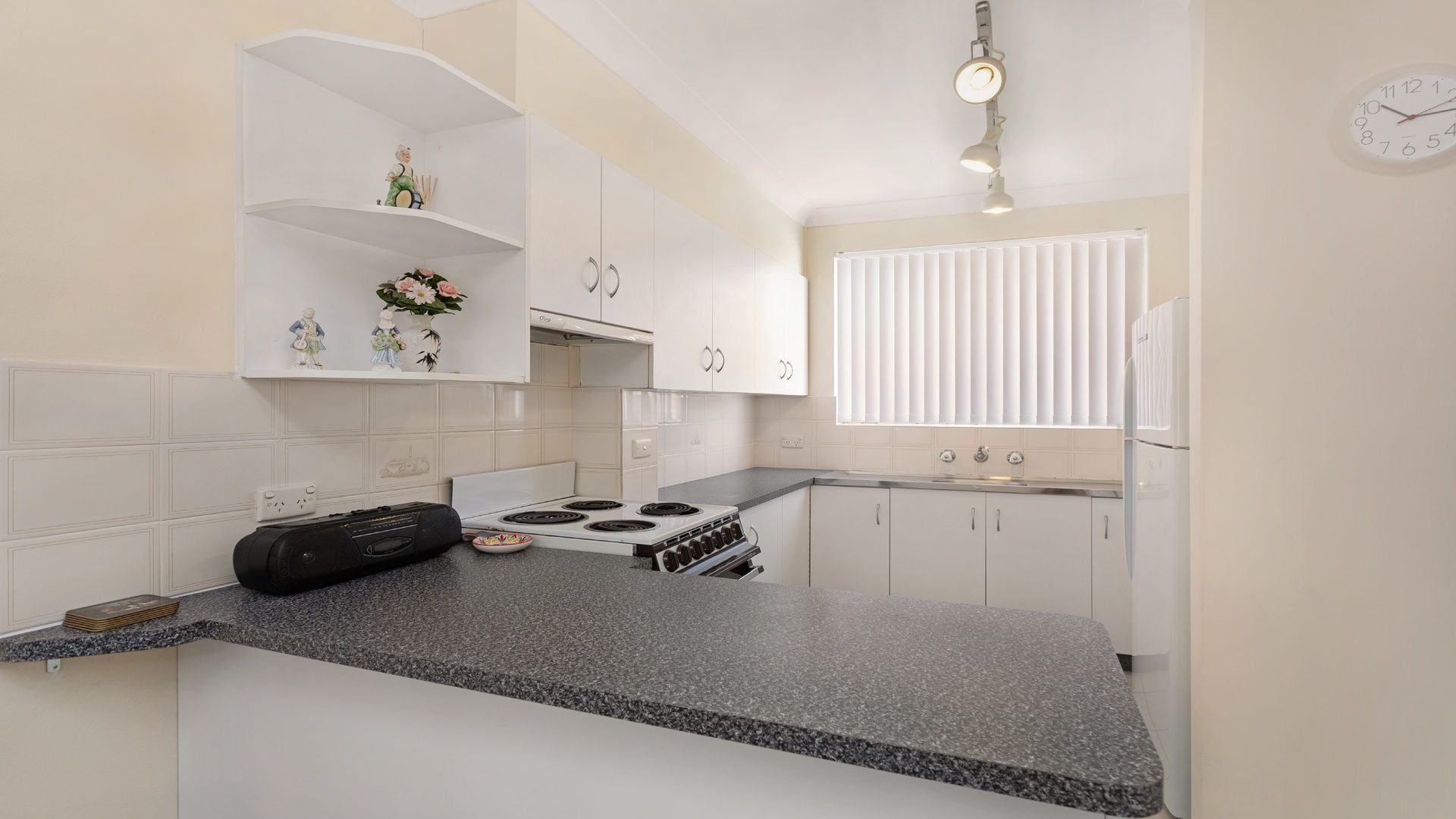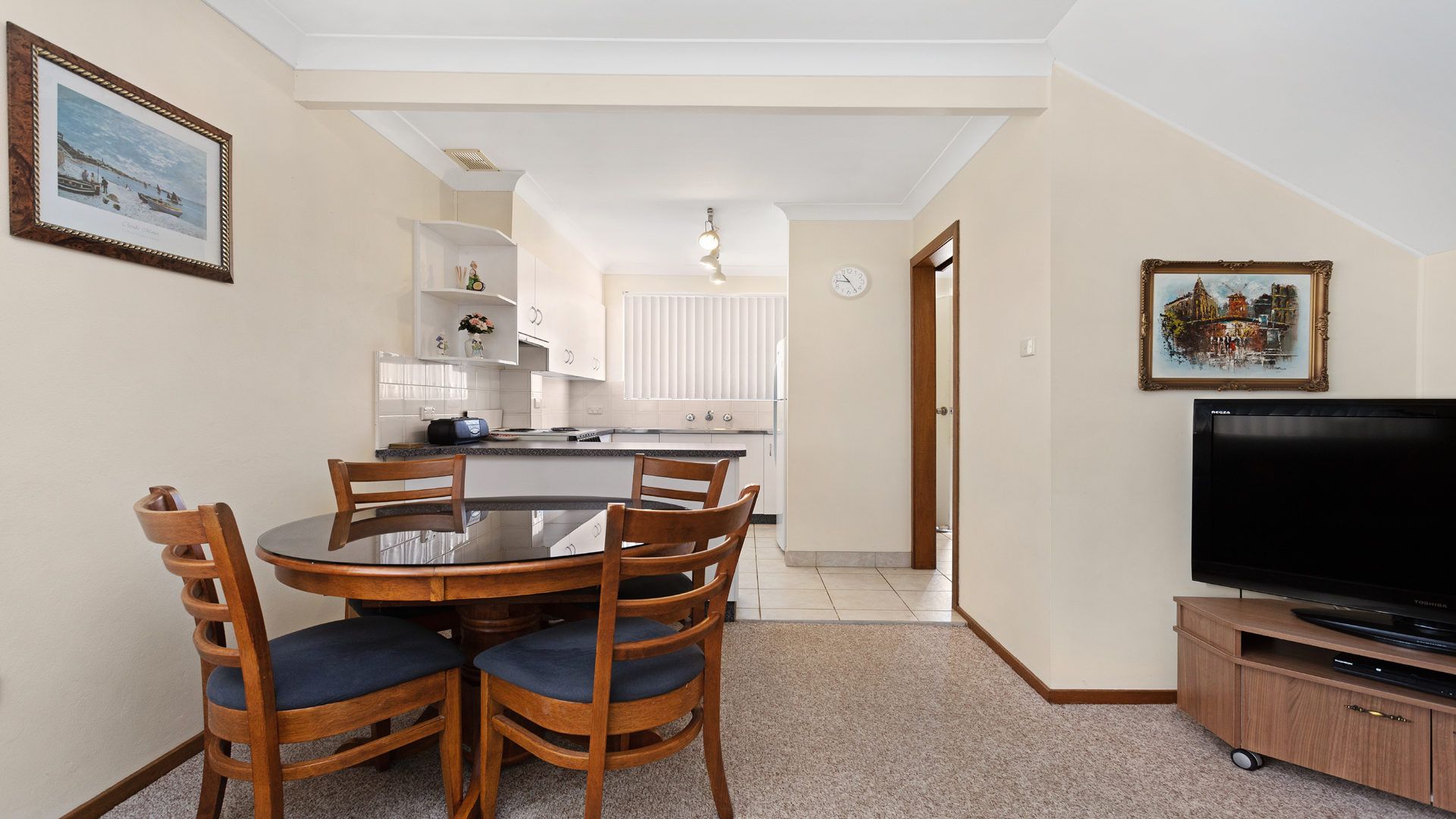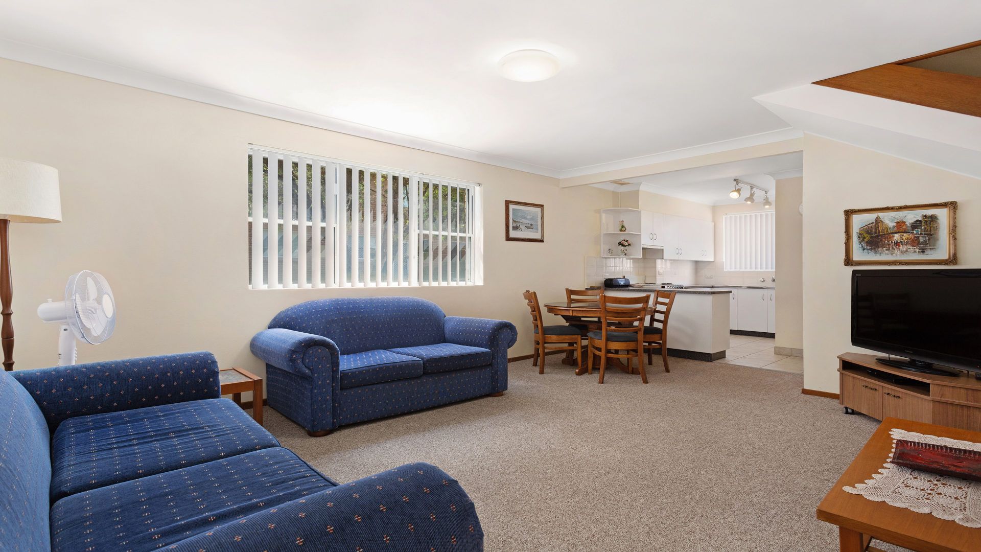 The open-plan living space flows effortlessly into a tidy kitchen and out to a front patio, while an allocated car space completes the package.
